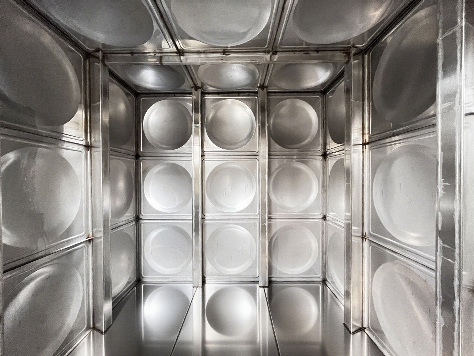 傳統的有拉筋水箱為保證水箱整體的強度,普遍采用內部焊接拉筋的設計,以固化內部結構的穩定,這一結構不僅占用了水箱內大量的存儲空間,更存在諸多的隱性問題——拉筋與箱體的焊接節點處容易因水質腐蝕、溫度變化從而出現滲漏風險,日常清潔時拉筋形成的 “清潔死角” 也為后期水質的污染埋下隱患。而無拉筋的結構,通過材料力學與結構工程的深度融合,摒棄了內部拉筋結構的設計,轉而依靠高效度板材與優化的箱體結構力學模型,實現了 “無拉筋仍強韌” 的技術突破。