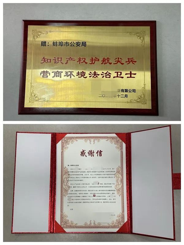“偵查中難題不少,因嫌疑人銷售時間跨度從 2019 年起長達數年,資金流水核查艱難,且河北涉事公司有自有品牌,真假貨混售,干擾判斷。為此,五河縣公安局成立的專案組付出了巨大的努力,耗費大量精力比對各方證據及公司信息,才精細鎖定犯罪金額。”五河縣公安局森林派出所所長劉慶亞說,現已查明涉案資金達800余萬元,并為被侵權企業追贓挽損60余萬元,“被侵權企業不僅多次致電致謝,12月18日,企業代理更遠赴而來,親贈牌匾與感謝信。”